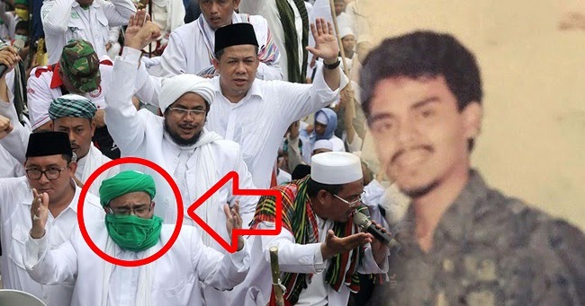 Habib rizieq saat aksi 212 (kiri), habib rizieq saat masih muda (kanan).
